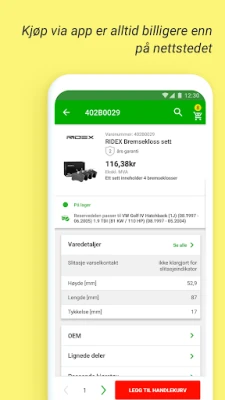 Optimaliser vedlikeholdet av bilen din og spar stort med applikasjonen som gjør bildeler lett tilgjengelig og rimelig. Opplev en verden av kostnadsbesparelser med alltid konkurransedyktige priser, eksklusive rabatter og spesialtilbud skreddersydd for dine behov. Dra nytte av personlige tilbud og en praktisk depositumskonto, som sikrer at du alltid får mest mulig for pengene. Denne plattformen er din ultimate ressurs for smart og økonomisk bilpleie, designet for å gjøre det enklere enn noensinne å finne akkurat det du trenger, til en pris du vil like.