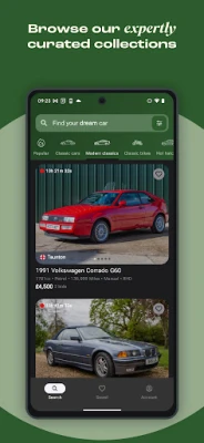 Oppdag din neste favoritt med våre intuitive funksjoner. Utforsk over 20 nøye kuraterte samlinger som raskt leder deg til de kjøretøyene som appellerer mest til deg. Enten du jakter på en legendarisk superbil, en elegant youngtimer, eller en spesifikk motorsykkel fra en svunnen tid, forenkler våre tematiske grupper – inndelt etter epoke, opprinnelse og type – din søken betraktelig. Fra en heit "hot hatch" til noe eksotisk fransk, Car & Classic sikrer en sømløs og engasjerende bla-opplevelse, og presenterer deg for akkurat det du ønsker å se.