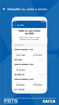 FGTS-appen gir deg enkelhet, sikkerhet og smidighet for å administrere din FGTS-konto. Sjekk saldo, se arbeidsgiverens innskudd, skriv ut utskrifter og håndter alle lovbestemte uttak direkte i appen. Få full oversikt over dine rettigheter og midler på ett sted.