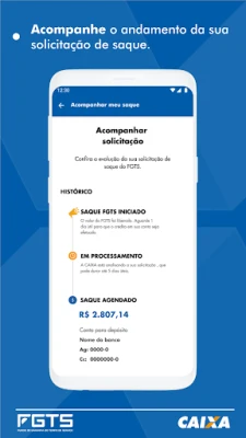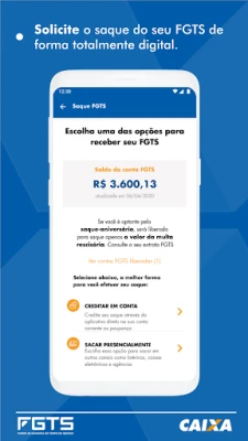 Ikke bare gir appen deg full oversikt, den forenkler også alle lovbestemte uttak fra FGTS. Uansett om du kvalifiserer for Saque-rescisão eller foretrekker fleksibiliteten med Saque-aniversário, kan du enkelt velge og administrere din foretrukne uttaksmetode direkte i appen. Trenger du å ta ut penger på grunn av oppsigelse eller pensjonering? Appen støtter digitale uttak og lar deg angi en foretrukket konto for innskudd, enten det er en CAIXA-konto eller en annen bank. For andre uttaksgrunner, veileder appen deg gjennom prosessen og muliggjør trygg innsending av nødvendige dokumenter direkte fra mobilen din.