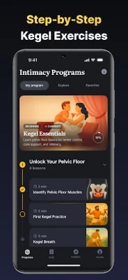 Kegel Prime er spesialutviklet for å forbedre din intime velvære, øke testosteronnivået, forbedre utholdenhet og ytelse, samt styrke din generelle mentale helse gjennom skreddersydd Kegel-trening. Enten du er nybegynner eller ønsker å finjustere din teknikk, tilpasser Kegel Prime seg ditt nivå. En innledende vurdering og justerbare vanskelighetsgrader sikrer presis veiledning via steg-for-steg videoer. Sanntidsfeedback overvåker sammentrekningsstyrke og timing for maksimal effektivitet. Appen tilbyr et spekter av målrettede øvelser – som lange hold, raske knip, heis-kegel, reversert kegel og puls-kegel – kombinert med pusteteknikker for å utvikle kontroll, utholdenhet og respons. Med kun 10 minutter daglig kan du forvente merkbare resultater innen uker.