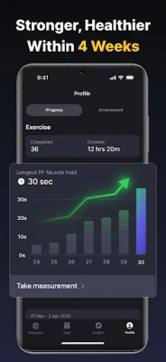 For varige fordeler inkluderer Kegel Prime en omfattende fremdriftssporing som gjør treningen til en naturlig del av din rutine. Følg din utvikling og milepæler på et intuitivt dashbord for høy motivasjon. Loggfør daglige helseparametre som væskeinntak, søvnkvalitet, seksuell velvære, libido og ernæringsvaner. Vår intelligente AI-analyse motor bruker dine data til å tilby personlig innsikt og forslag, og optimaliserer resultatene basert på dine vaner. Etter hver treningsøkt kan du dessuten låse opp engasjerende helseartikler eller tips for relasjoner – en belønning som kombinerer disiplin med glede. Kegel Prime er bygget med personvern i fokus: den tilbyr telefonfri modus med vibrasjon og lydsignaler, Apple Watch-integrasjon, et diskret utseende og garanterer datasikkerhet.